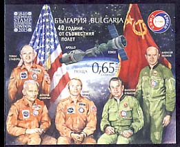 65st. Аполо- Съюз, СССР и САЩ флагове и космонавти