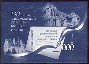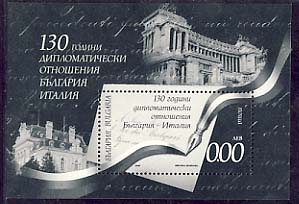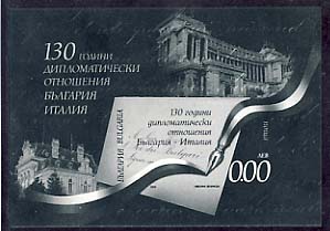 0 st. | 130th anniversary of the diplomatic relation Bulgaria-Italy zero S/s black imperf | n.a. MNH | n.a. used |