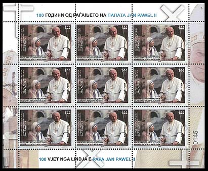 144 dinBirth Centenary of Pope John Paul II mini sheet 35.77 €