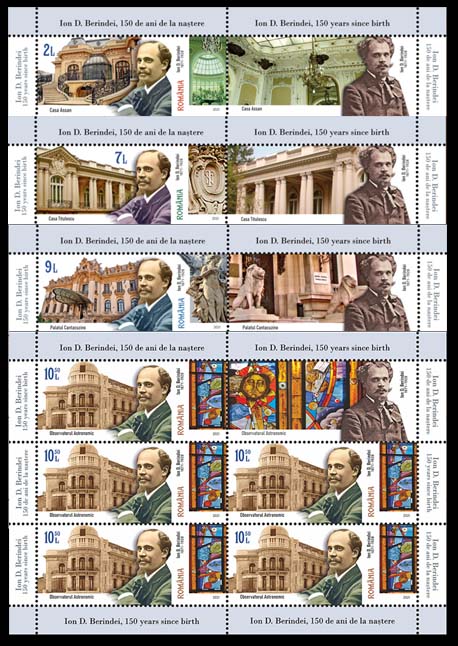 10.50 lei150th birth anniversary of Ion D. Berindey, mini sheet 190.95 RON