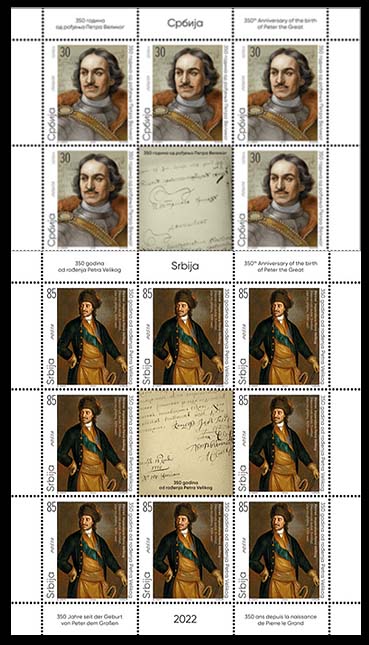 RSD350 Years since the birth of Peter the Great , mini sheet 13.30 €