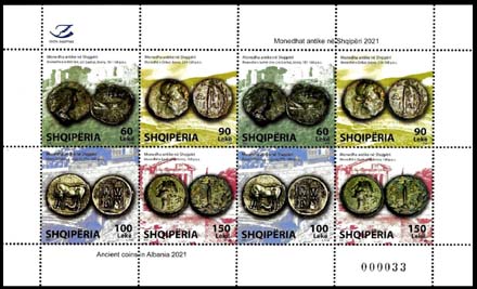 lekeAncient coins in Albania 2021, mini sheet 12.00 EURO
