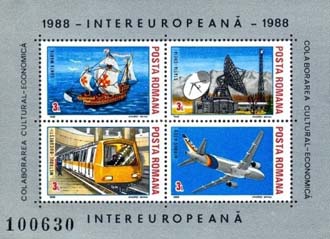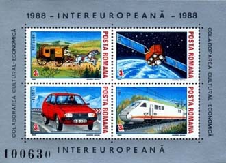 Mail coach, ECS Telecommunication satellite, Oltcit car, ICE high-speed electric train, |