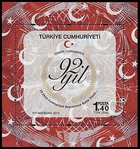 2015-10-29 92nd Year of the Republic of Turkey Souvenir Sheet