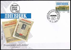 30 RSD | FDC - 80 years of the daily newspaper Dnevnik | n.a. MNH | 1.16 EURO damga ile satın al |