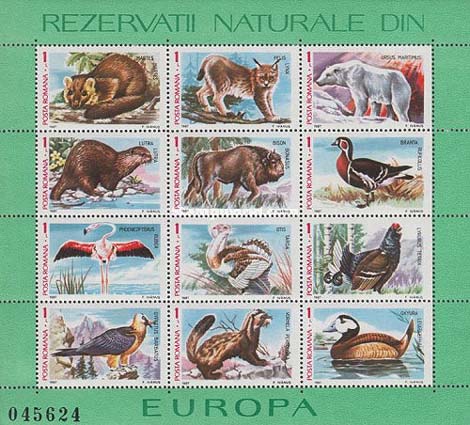 Pine marten, Lynx, Polar bear, Eurasian otter, Wisent, Redbreasted goose, Carribean Flamingo, Great Bustard, Black grouse, Bearded vulture, Marbled polecat, Whiteheaded duck