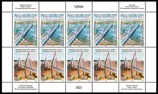 2x86 RSD65th anniv. diplomatic relation Serbia - Morocco, mini sheet 12.43 EURO